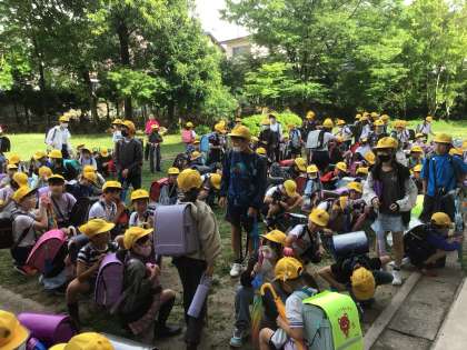 ※ちなみに写真は3年生以上の下校の様子です。立っている子の多くは班長さんで全員が揃うまで立って待つようにしています。班長さんが全員座れば、全員揃ったということになります。