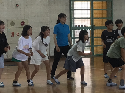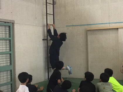 ボルダリングの尾川先生が来てくれて、体育館で楽しく運動をしています。