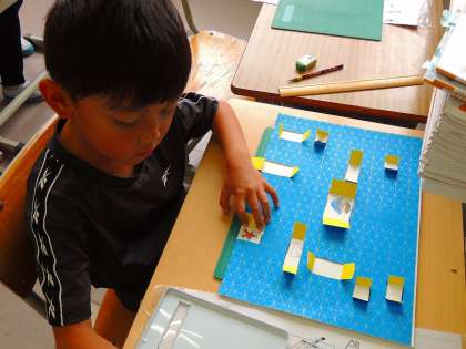 窓を開くと、お部屋の様子がわかるので、窓を開けるのがとても楽しいです。担当の先生は、カッターで指を切らないか冷や冷やしながら指導しています。今日もけがをする子なし。安全に活動できました。