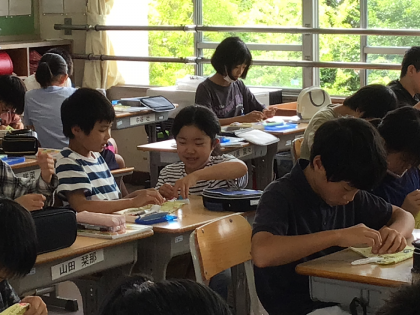 5年2組さんでは家庭科で裁縫の勉強をしていました。