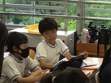 5年生 英語の授業です 公開日 2024/06/28 更新日 2024/06/28 校長室から 5年1組さんの英語の授業ではタブレットを使って勉強していました。 今日は「できる」「できない」の文を作っていました。
