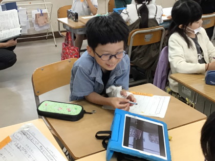 3年2組さんでは、理科の授業で「音の大きさによってふるえ方にちがいがあるか調べうよう」という授業をしていました。