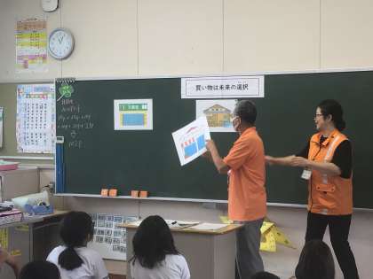 今日は「買い物は未来の選択」と題して、フェアトレードや間伐材、食品ロスの勉強をしていました。