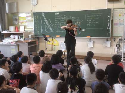 大きな拍手で迎えられ、5年生のみんなの無茶ぶりに合わせて希望する曲を弾いてくれました。ステキな時間になりましたね。