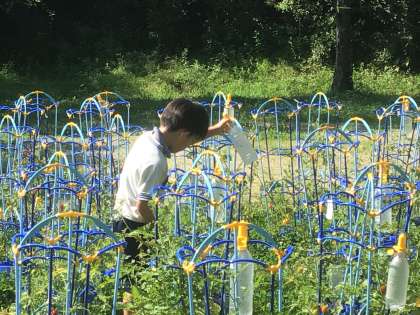 大急ぎで水やり中です