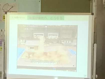 土木課の方からは「小学生高学年のみなさんが、まずは自分の命だけど、すこし余裕があったら身体の不自由な人や小さい子を助けてくれたり、声を掛けてくれたりすると嬉しいです」とのお話もありました。
