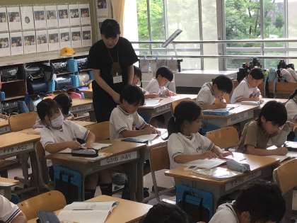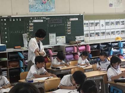 2年1組さんに、今日も授業ボランティアで、保護者の方が丸付けやつまづいている子への声かけのため、学校に来てくださっています。