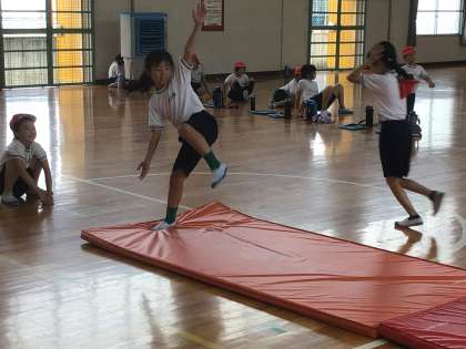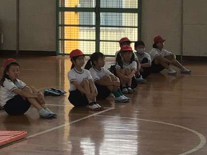 体育館は少し低く27.4度でしたので、久々の体育が実施できました。ただ蒸し暑さはあるので、身体を動かし続ける運動は避け、無理はしないように実施していました。