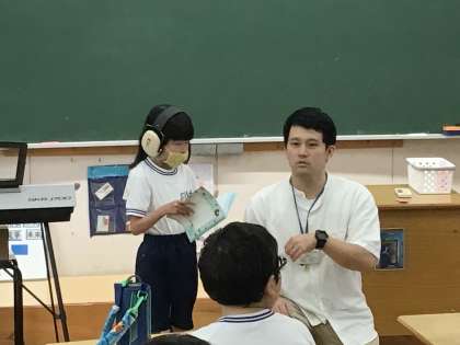 特別支援学級のみなさんが集まって、合同で朝の会を行っていました。