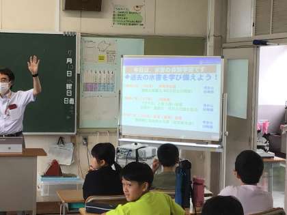 今日は5年生のみなさんが洪水について勉強しています。
