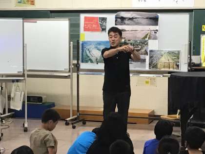 今日は、5年生全員で洪水を実際に体験された方のお話を聞きました。