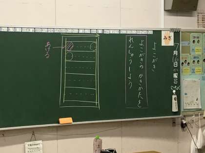 1年1組さんでは国語の授業で「よこがきの かきかたを れんしゅうしよう」に取り組んでいました。