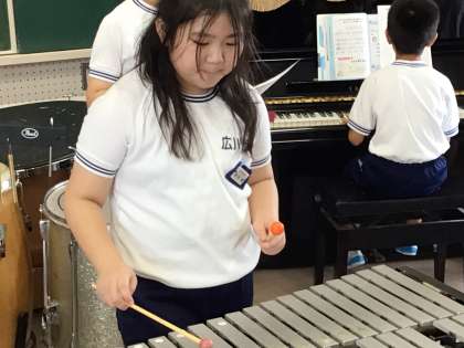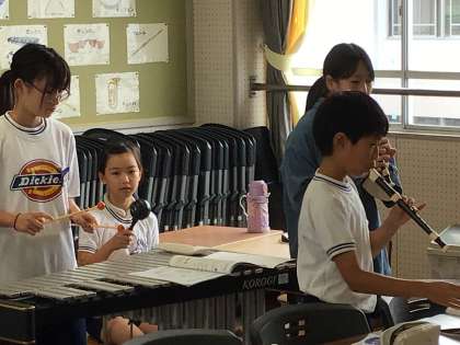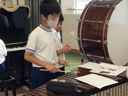 5年1組の子たちが音楽の授業で合奏練習をしていました。