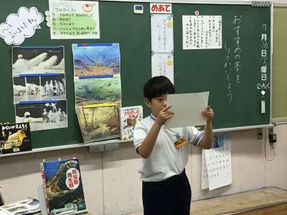 国語の授業で「おすすめの本を紹介しよう」という原稿づくり、発表の時間でした。
