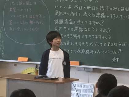 5年1組、2組さんでは夏休み前、最後のスピーチが行われていました。