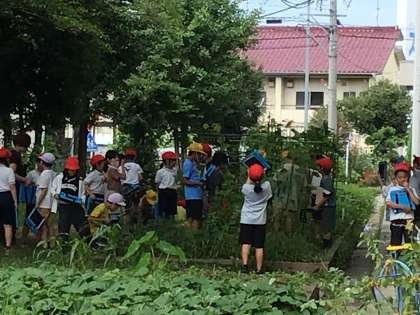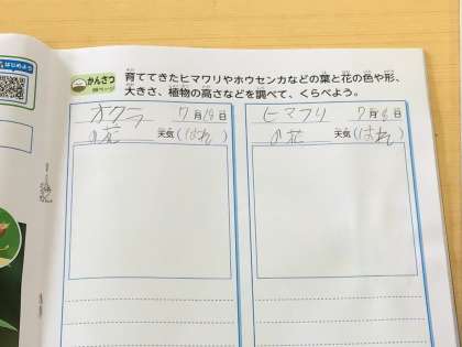 「ひまわり」「おくら」がどんな成長をしているか、観察します。