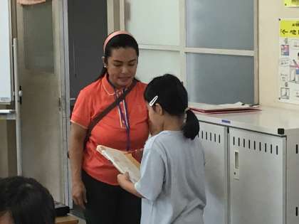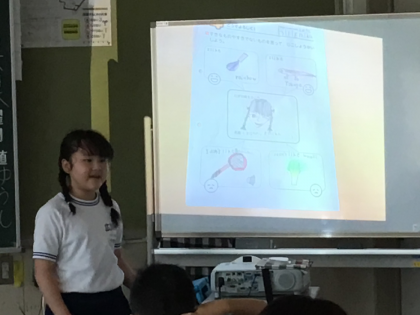 最後はみんなの前で、発表してもよい子が立候補して前でお話していました。