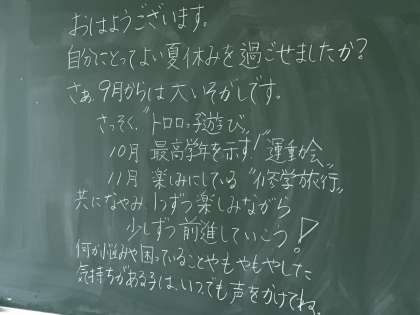 6年1組吉田先生からの黒板メッセージです。