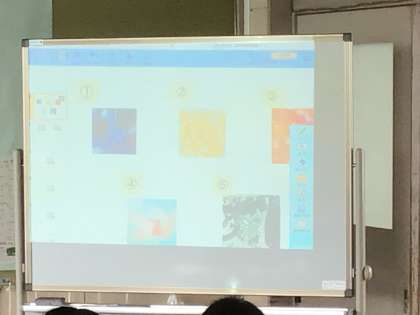 ホワイトボードに映る作品について、感想を話していました。