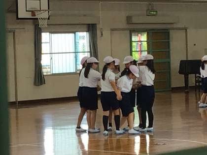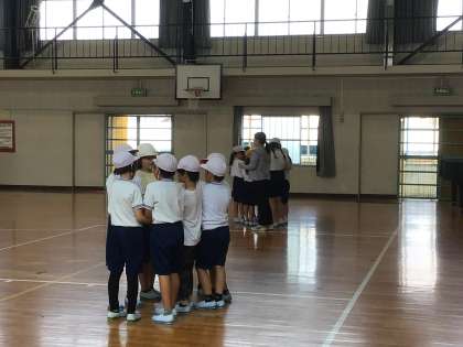 4年2組さんが体育の授業で、「人間知恵の輪」に挑戦していました。