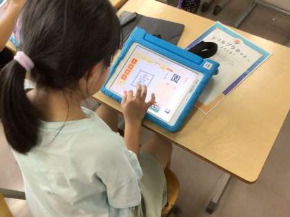 「じしゅがくしゅう」や「ミッション」に挑戦できるようで、今日は漢字の書き順の勉強をしていました。「じしゅがくしゅう」は文字通り、自分で進めていってよいそうです。「ミッション」は先生が問題を作成し、みんなに解いてもらうそうです。