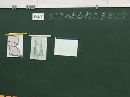 1年2組さんでは図工の授業で「うごきのあるねこをかこう」に挑戦していました。
