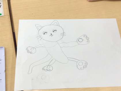 「今日は可愛く描こうとか、リアルに描こうという練習じゃなくて、動きがあるねこを描こうね」とお話がありました。