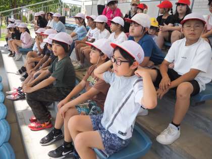 天気が良かったので、屋外で実施する予定でしたが、気温がとても高かったため、職員の方と小野先生が相談してくださり、日陰または屋内で行う雨降りバージョンでの実施となりました。