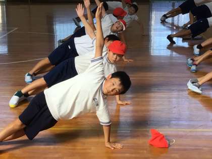 運動会に向けて、5年2組さんが曲に合わせて練習中です。