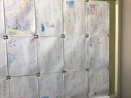 2Fから3Fの渡りに6年生の子たちが作った俳句が掲示されています。