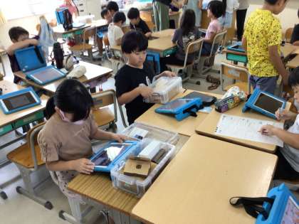 3時間目は3年1組さんで、MESH(メッシュ)というプログラミングに挑戦していました。