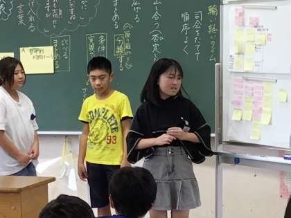 班で話し合った後、発表をし、出てきた4つの班の意見について、質問をしたり、まとめたりしていました。