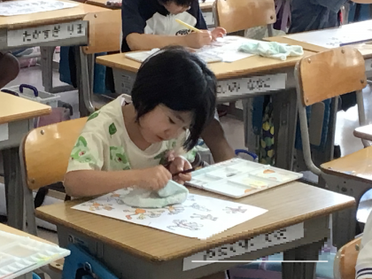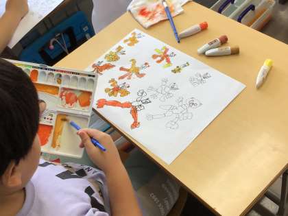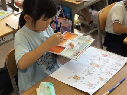 どんな色にするか、なかなか決まらず、悩んでいる子もいましたが、塗り始めることができたでしょうか?