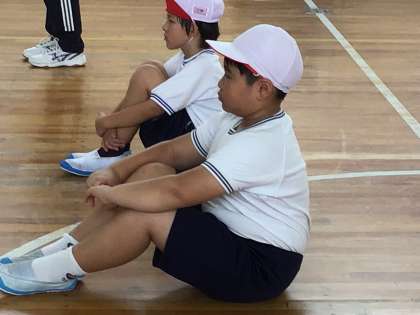 かいちゃん先生の手を叩く音を聞いて、みんなも手を叩きます。顔は下を向くか、目を閉じます。集中力が大事だそうです。
