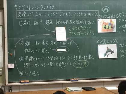 4年1組さんは、図工の授業で友達の作った作品を鑑賞し、感想交流を行うそうです。