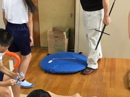本校の簡易トイレは下水に直接つながっているそうです。下水管が壊れていなければ弁を閉じずに、そのまま使えるそうです。壊れている場合は弁を閉じて、ボットン便所のように、マンホールに貯めていきます。避難される人数にもよりますが、およそ4日分は貯めることができるそうです。