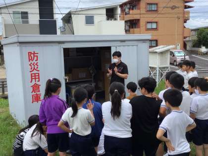防災倉庫のカギを空けて、中を見せてもらいました。