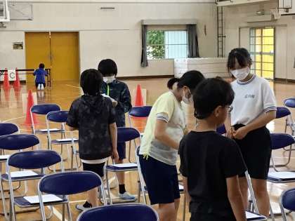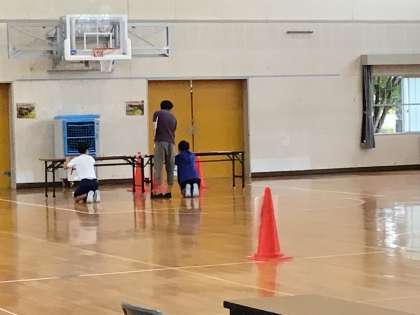 6年生のみなさんが明日の「就学時健診」に向けて、体育館の会場づくりをしてくれています。