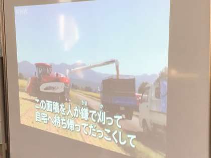 また農薬もドローンで撒いたり、コンバインで稲刈り、脱穀を行ったりしているそうです。