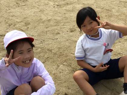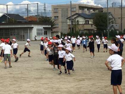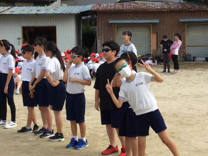 捕まえる役の子は運動委員会の子たちでサングラスをかけています。