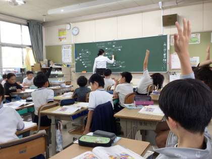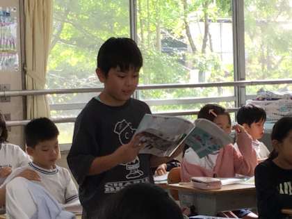3年2組さんでは教育実習生の金子先生が「バスの中で」という教材で授業を行っていました。