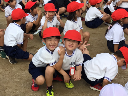 写真は昨日の「逃走中」が始まる際、待機中の1年生のみんなの様子です。