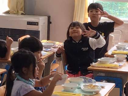 4月当初は準備も、食べるのも時間がかかり、4時間目の途中から準備をして、なんとか食べきっていましたが、今は片付けも先生から指示がなくても、当番の子たちが動けています。