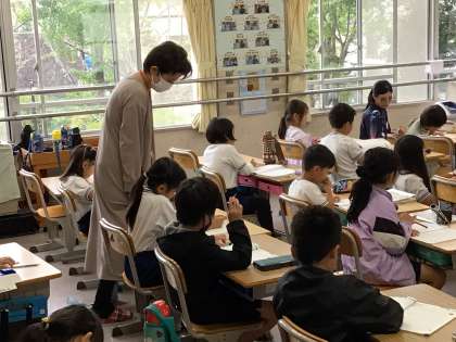 T1の松村先生、担任の琴香先生、保護者ボランティアの方と、3人の大人が教室内にいるので、いろいろな子が質問しやすい雰囲気になっていました。
