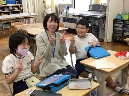 5・6年生は運動会練習を体育館で行っていたため、先生と3人で勉強中でした。
