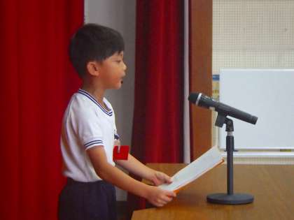 2年生の充稀くん、6年生の友真くんが代表でスピーチをしてくれました。