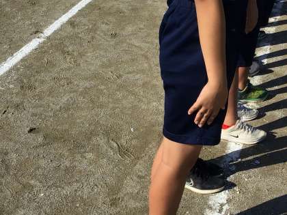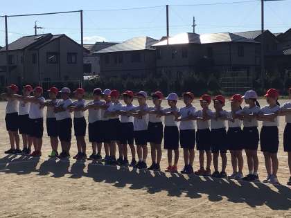 真悠先生の指示のもと、パワーアップタイムから運動場では5・6年生が表現の練習をしていました。