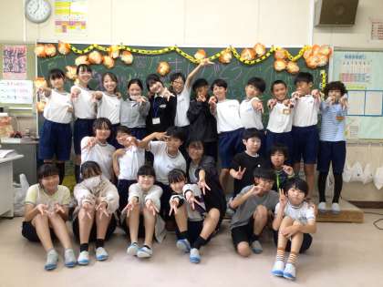 「いす取りゲーム」と「なんでもバスケット」をして、大盛り上がりの6年1組の子たち。