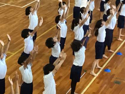 5・6年生の表現を見学しています