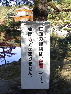 金閣を池越しに見られる場所には上記のような看板も置かれているのですよ。